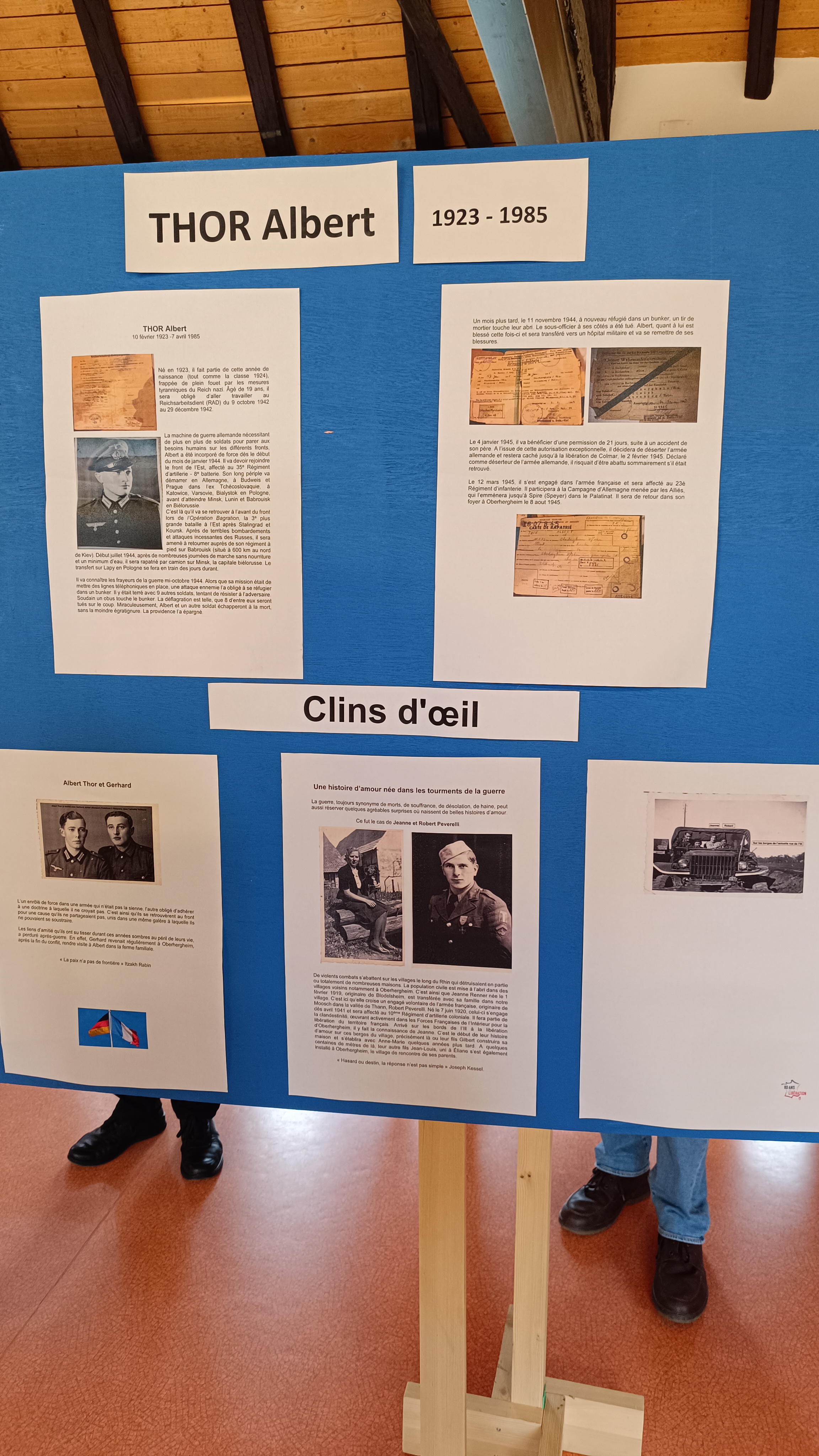 Des panneaux explicatifs, sur le camp de Tambov, la poche de Colmar, le retour de nos incorporés de force qui se sont pour la plupart murés dans le silence, vivant secrètement leurs douleurs, illustraient également cette période sombre de la guerre, suivi d’une partie consacrée à la libération de nos villages d’Oberhergheim et Biltzheim.