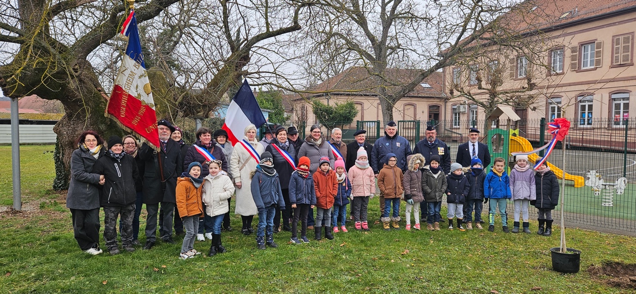 Afin de commémorer le 80ème anniversaire de la Libération d'Oberhergheim, survenue le 06 février 1945, rendez-vous était donné dans la cour de l'école communale pour y planter l'Arbre de la Liberté, un ginkgo biloba.