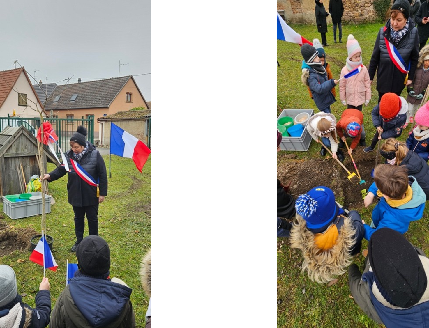 A l'initiative de Corinne Sick, toute l'équipe municipale était réunie pour cette occasion, entourée des enfants de l'école primaire ainsi que de notre association.