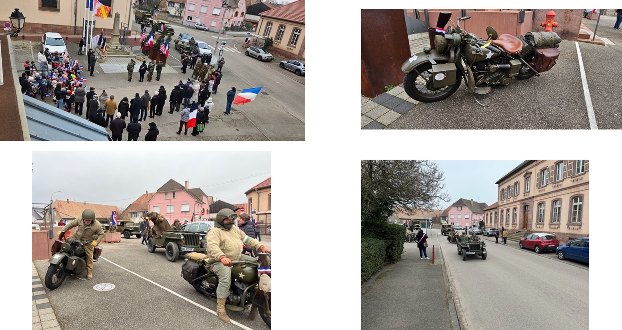 Le cortège, composé de deux Jeep, d’un camion GMC, d’un Command-Car Dodge et de deux motos Harley-Davidson appartenant à des particuliers passionnés de la région, s’est arrêté devant le monument aux morts à Oberhergheim en fin de matinée.